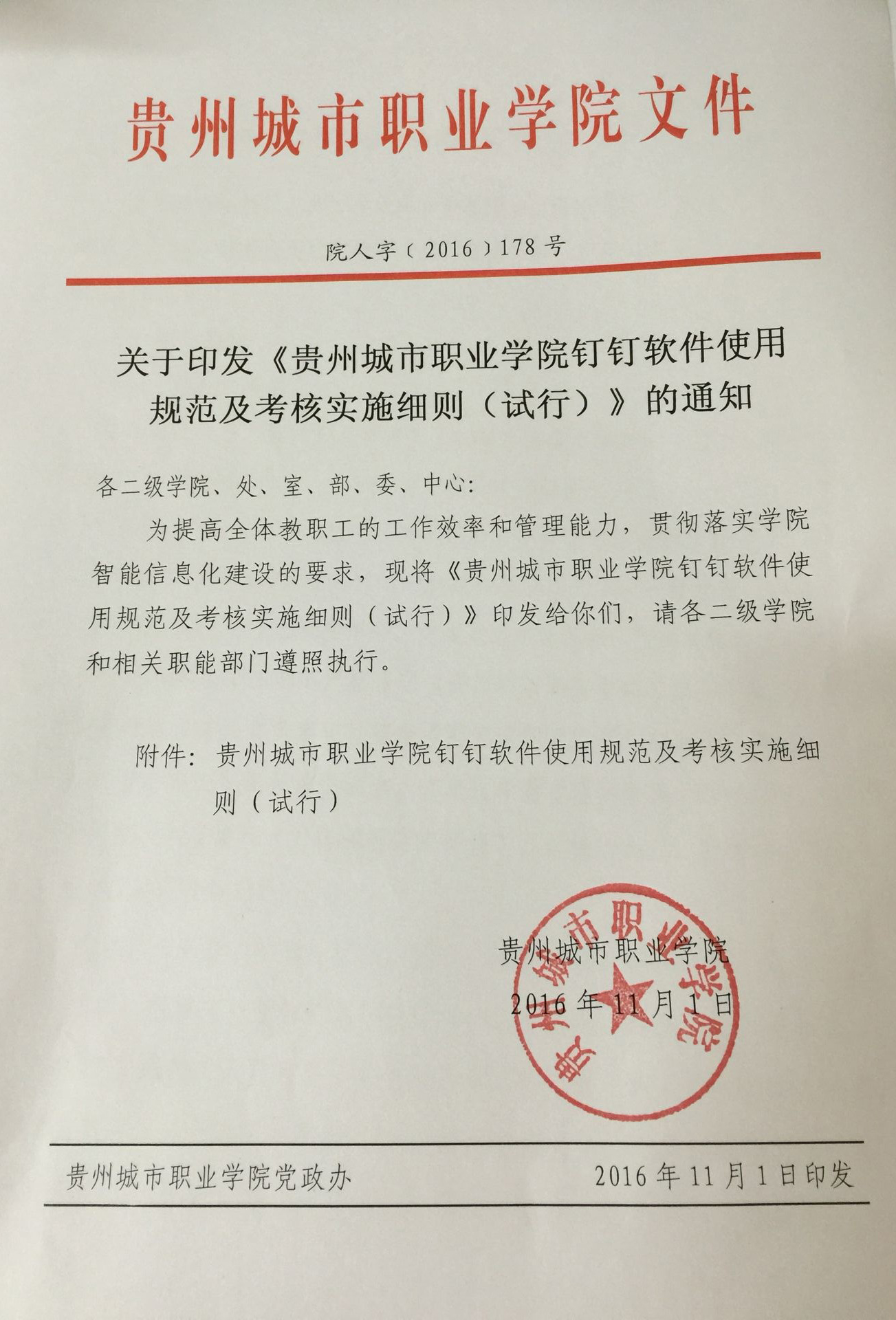 关于印发《贵州城市职业学院钉钉软件使用规范及考核实施细则(试行)》的通知