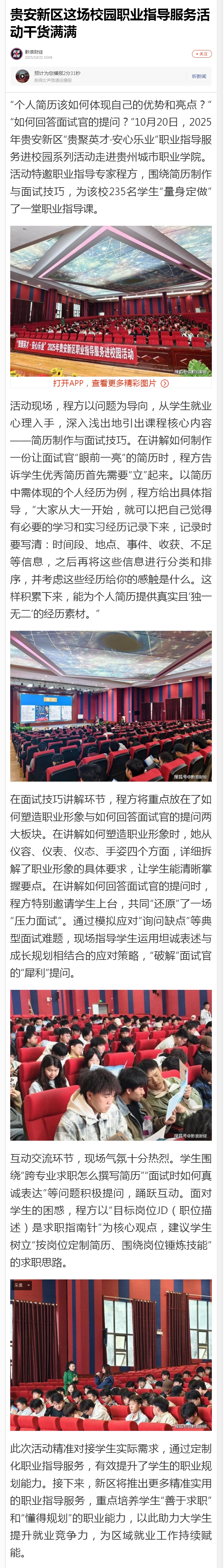 黔浪财经 | 求职“一站式攻略”来了!贵安新区“贵聚英才·安心乐业”职业指导服务走进贵州城市职业学院