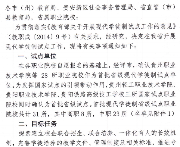 省教育厅办公室关于开展现代学徒制试点工作的通知