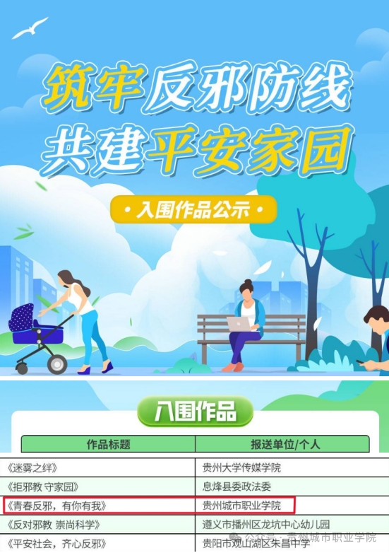 近年来,贵州城市职业学院始终坚持贯彻党的教育方针,落实立德树人根本任务,注重加强学生思想政治教育,通过多种形式开展反邪教宣传教育,取得了显著成效。此次入围省级活动,将进一步推动我校反邪教宣传教育工作的深入开展,为构建平安校园、和谐社会贡献力量。