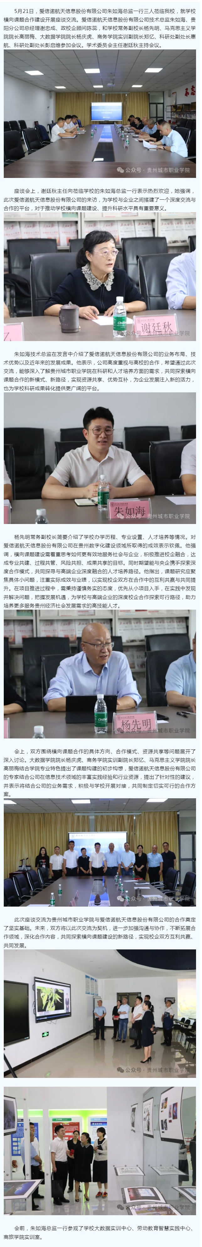 校企聚力谋远,共探横向课题建设新路径 | 爱信诺航天信息股份有限公司赴贵州城市职业学院开展座谈交流