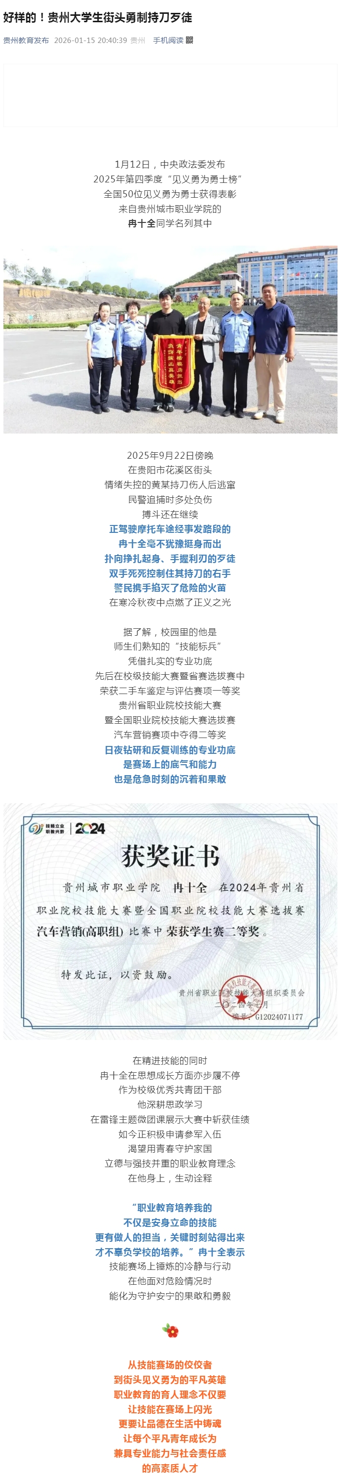 贵州教育发布综合 | 好样的!贵州大学生街头勇制持刀歹徒
