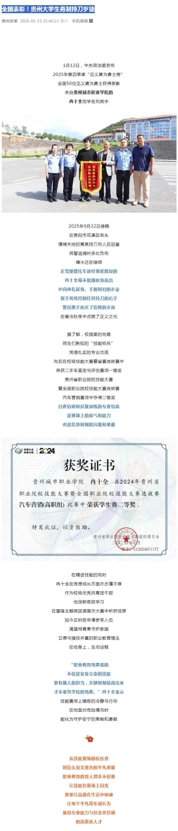 贵州改革 | 全国表彰!贵州大学生勇制持刀歹徒