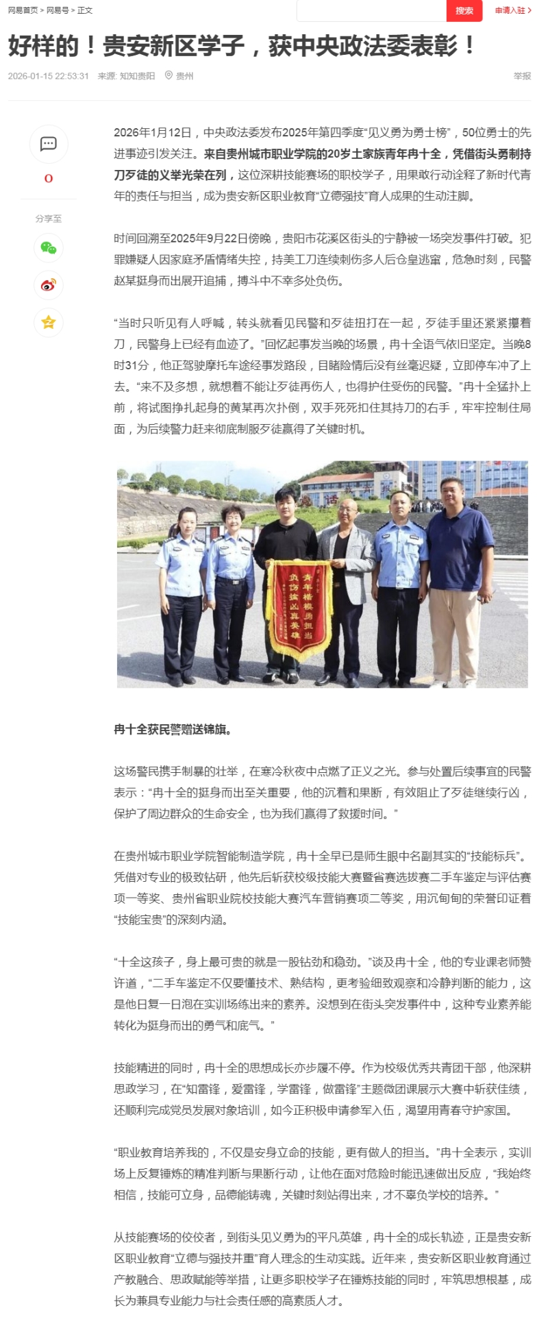 网易号 知知贵阳 | 好样的!贵安新区学子,获中央政法委表彰!