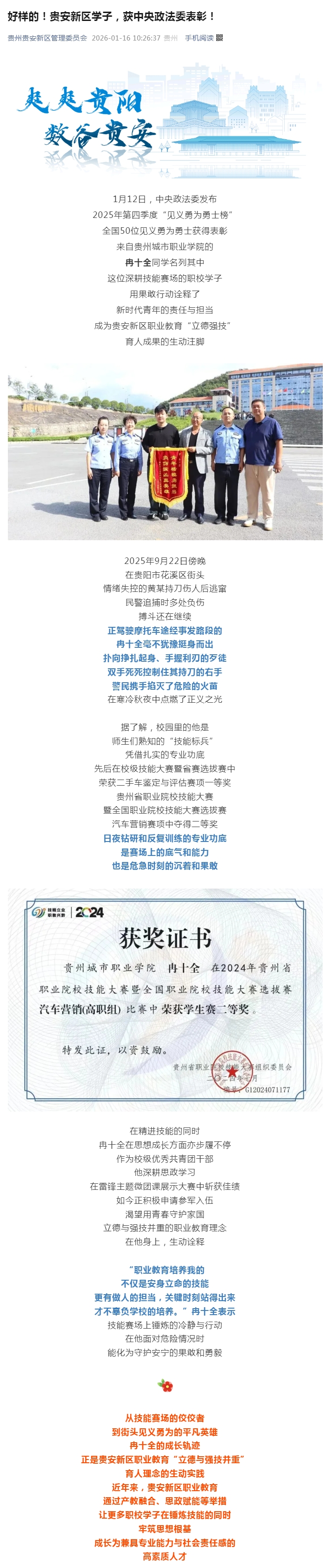 贵州贵安新区管理委员会 | 好样的!贵安新区学子,获中央政法委表彰!