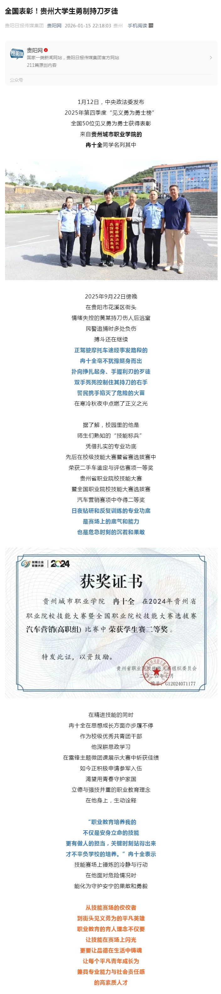 青青贵阳 | 全国表彰!贵州大学生勇制持刀歹徒
