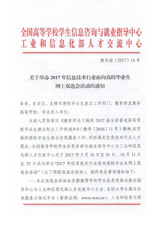 关于举办2017年信息技术行业面向高校毕业生网上双选会活动的通知