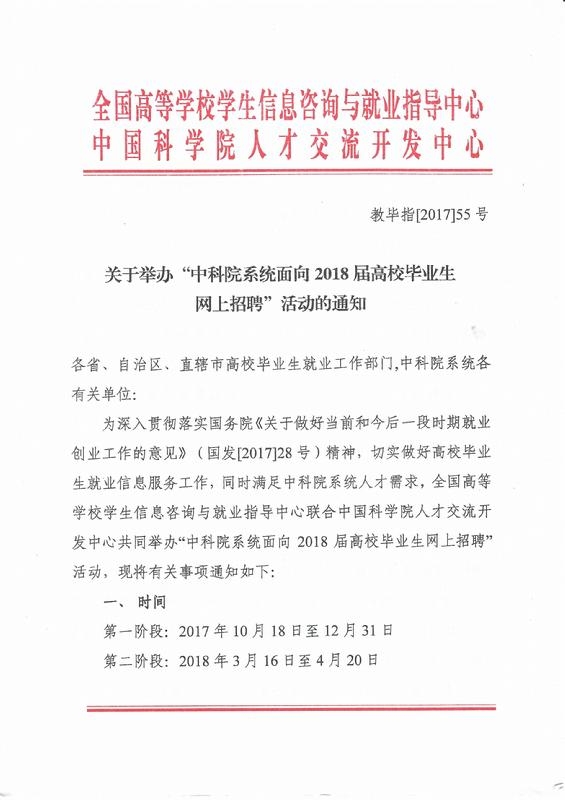关于举办“中科院系统面向2018届高校毕业生网上招聘”活动的通知