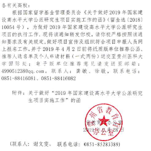 省教育厅办公室转发国家留学基金委“关于做好2019年国家建设高水平大学公派研究生项目实施工作”的通知