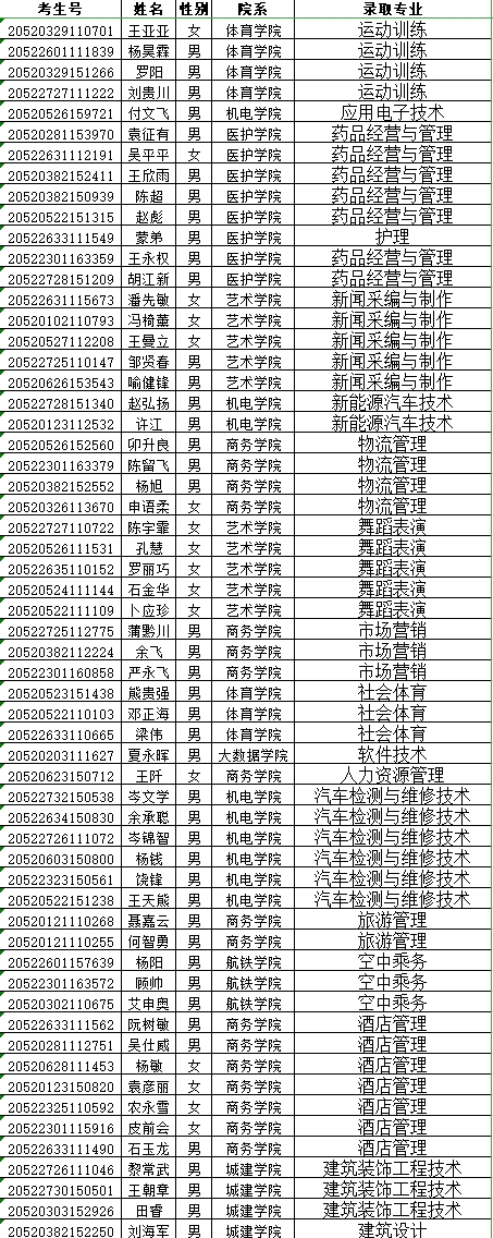 贵州城市职业学校2020年第一次分类招生拟录取考生名单公示