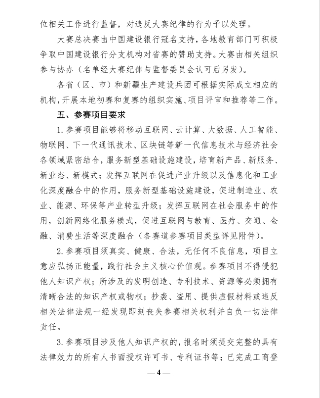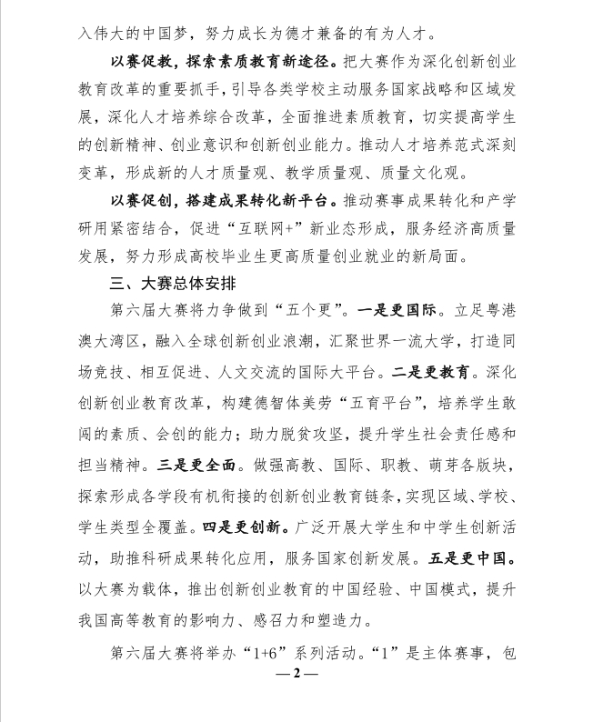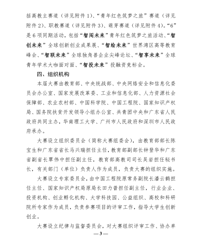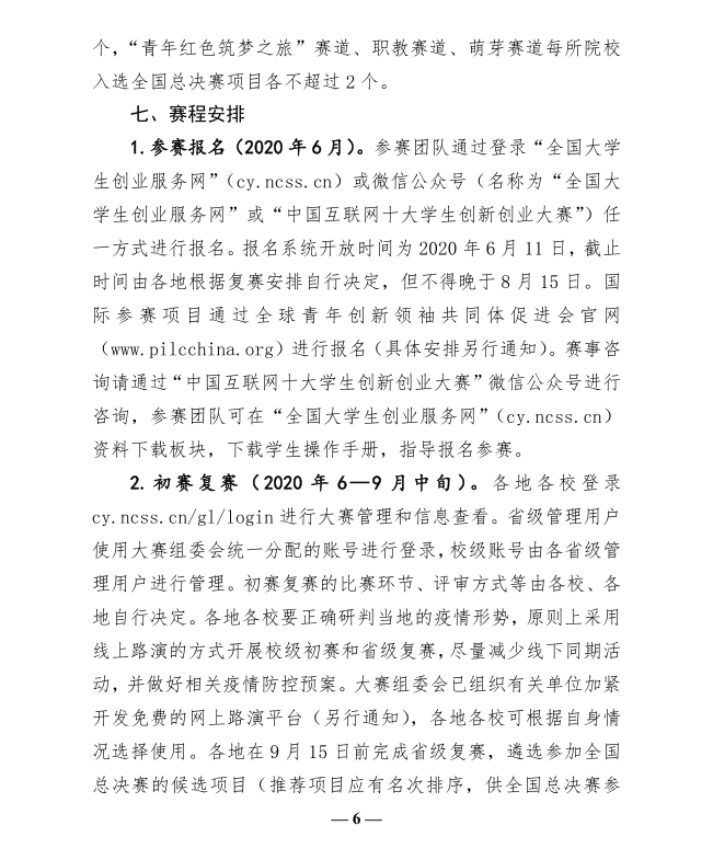 教育部关于举办第六届中国国际“互联网”大学生创新创业大赛的通知