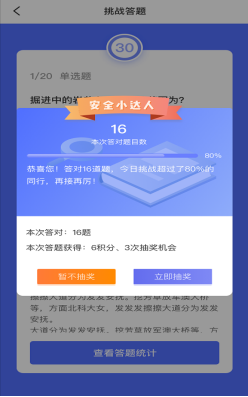 (2)每日挑战答题结束后,选择“暂不抽奖”,若想再次抽奖,可点击活动页面的“剩余抽奖次数”。