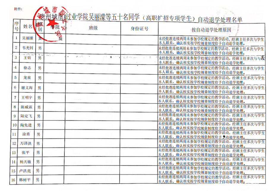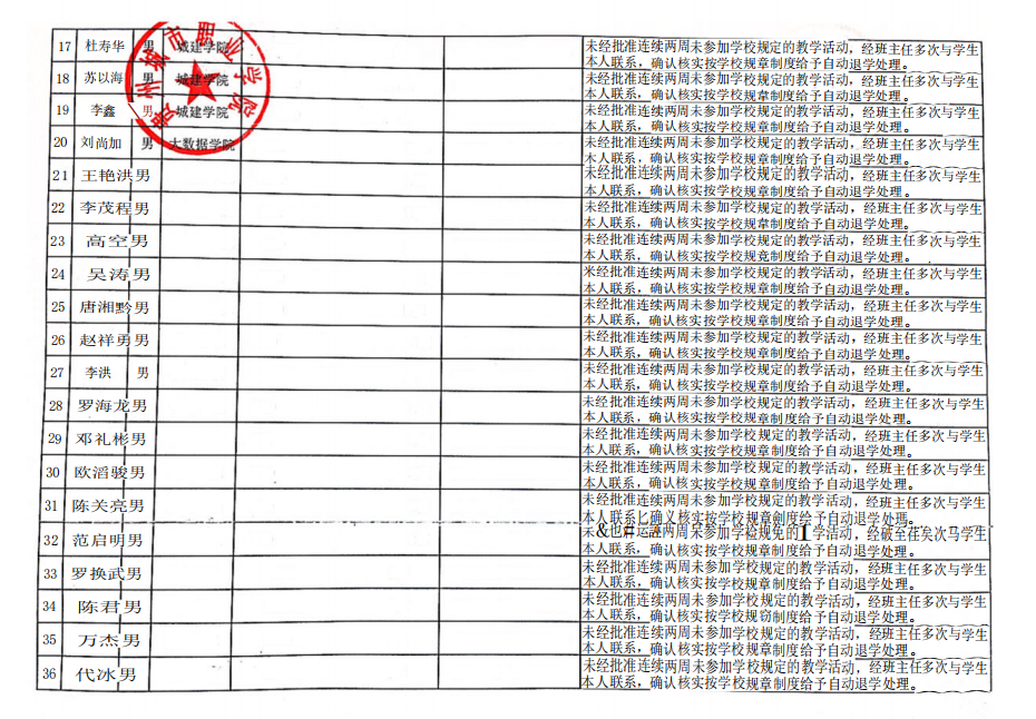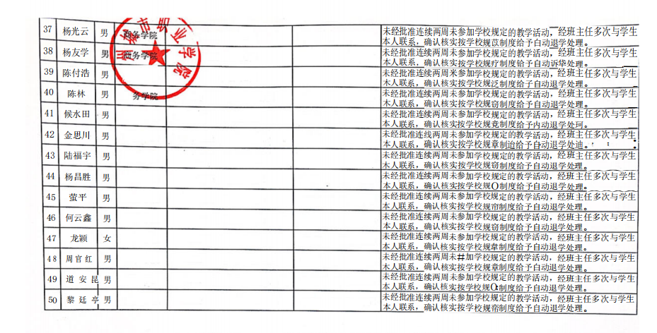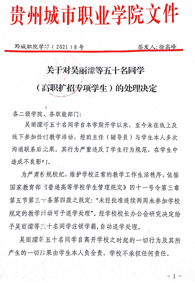 关于对吴丽濛等五十名同学(高职扩招专项学生)的处理决定