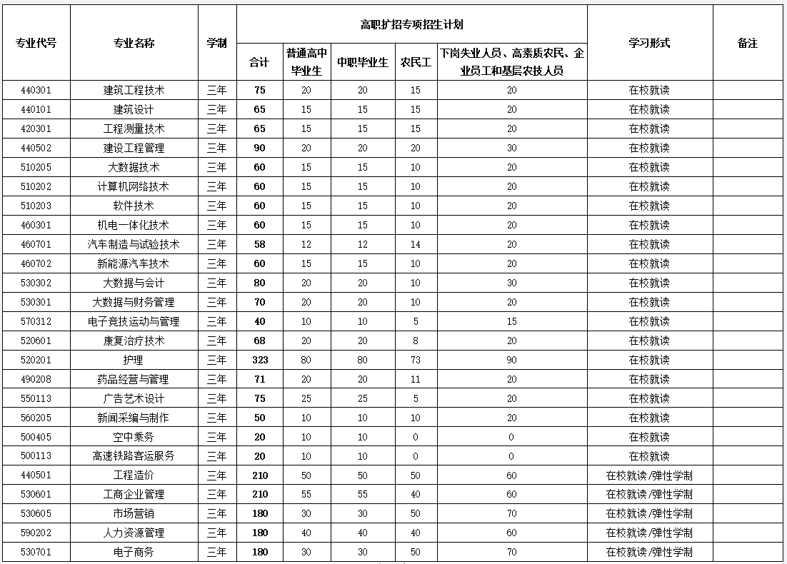 二、招生专业和计划(最终以省招生考试院审批为准)