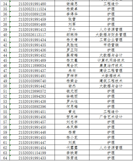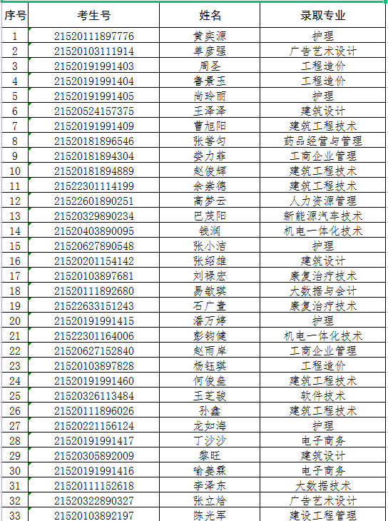 贵州城市职业学院2021年高职扩招第一批拟录取名单