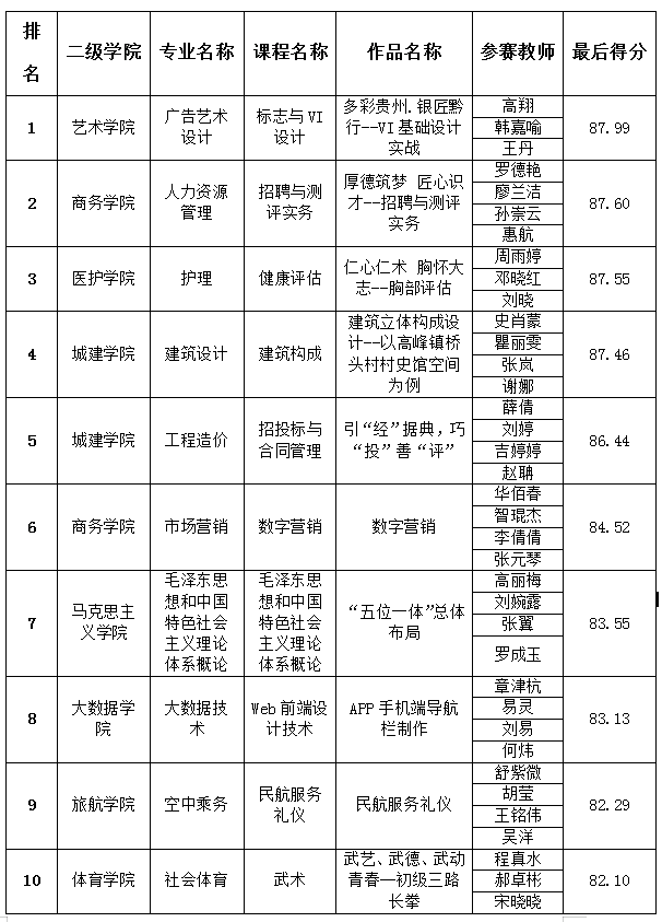 2022年贵州城市职业学院教学能力比赛校内选拔赛结果公示