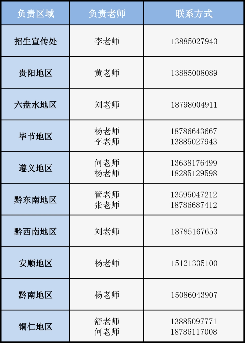 学校各地区志愿填报指导联系方式 欢迎填报贵州城市职业学院 志愿填报代码0708