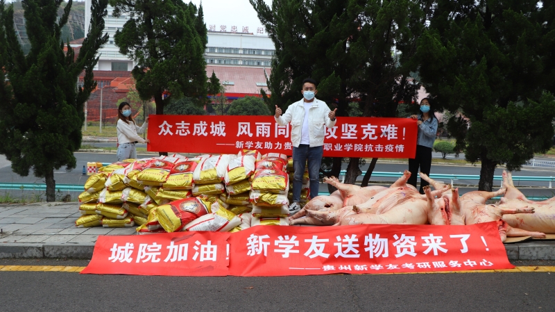新学友考研服务中心向我校捐赠大米6000斤、猪肉1888斤,价值5万元。