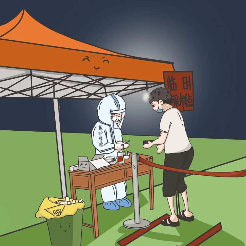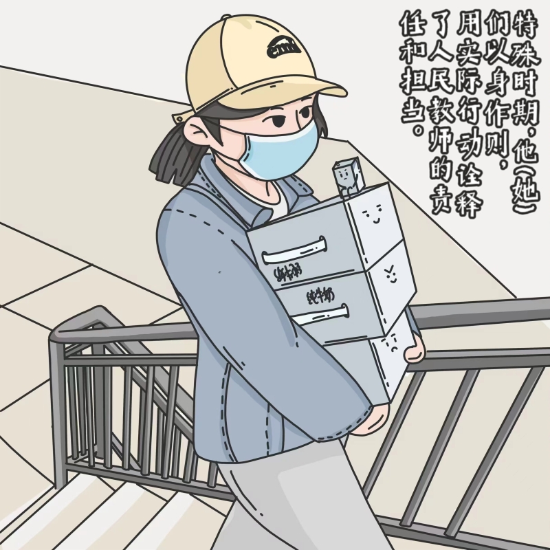 (为感谢疫情期间艰辛付出的老师们,艺体学院21广告1班陈容同学,用画笔记录下城院教师们在抗疫中平凡却动人的瞬间。)