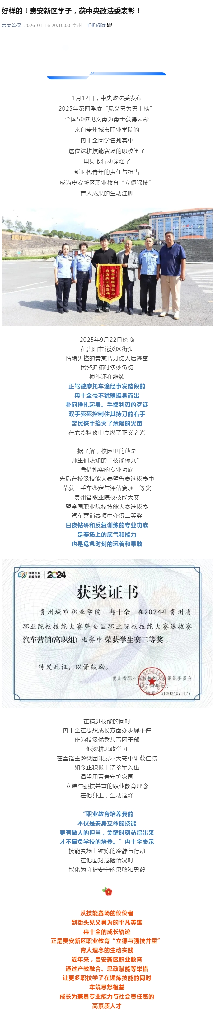 贵安综保 | 好样的!贵安新区学子,获中央政法委表彰!