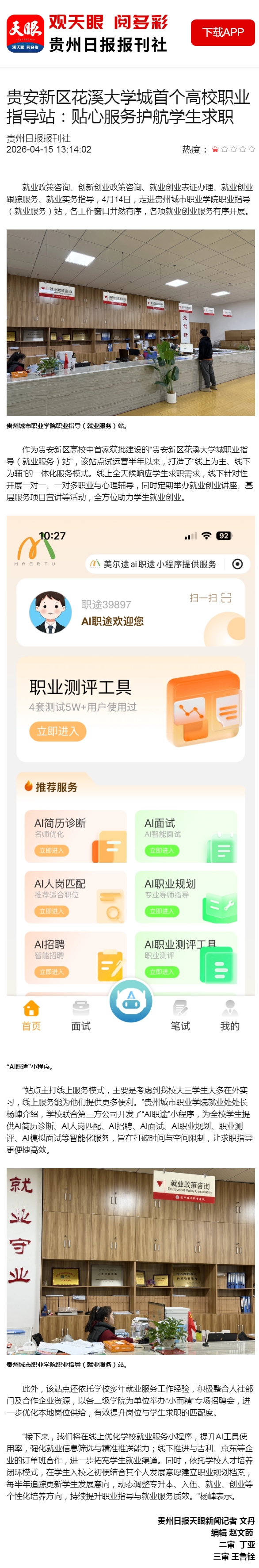 天眼新闻 | 贵安新区花溪大学城首个高校职业指导站:贴心服务护航学生求职