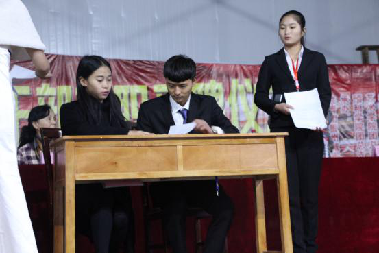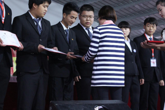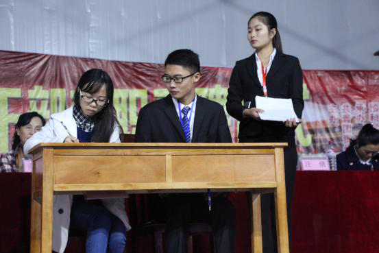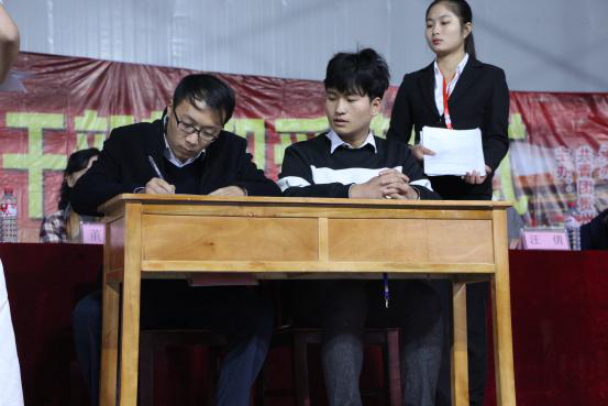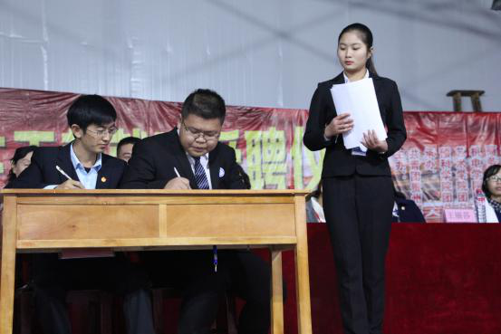 学生干部代表依次上台与团委孔玉林书记以及各学院团总支书记签订工作责任书。