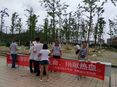 2017年6月14日,我校红十字协会利用课余时间在大学城校区足球场门口开展无偿献血宣传活动。活动中对献血知识进行了宣传并发放了献血宣传资料,号召大家积极加入献血队伍,为挽救他人的生命贡献自己的一份力量。
