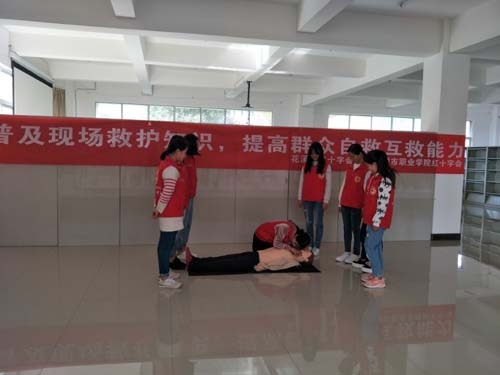 2017年10月25日,红十字协会救护队开展了救护技能培训,让同学们学习了解了应急救护的基本知识,掌握了调整心态、舒缓压力的方法,还增强了爱惜生命、关爱亲人的意识,提升了救助他人、奉献爱心的责任感,取得了良好的培训效果。
