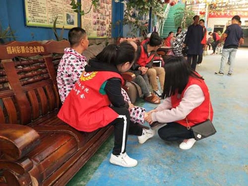 2017年11月08日早上,我校红十字会和萤光协会组织40余人在金竹老院里进行了献爱心服务。