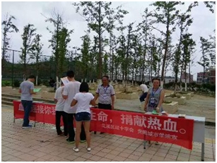 2016年6月14日,贵州城市职业学院红十字会联动花溪区红十字会在大学城校区足球场门口开展无偿献血宣传活动。