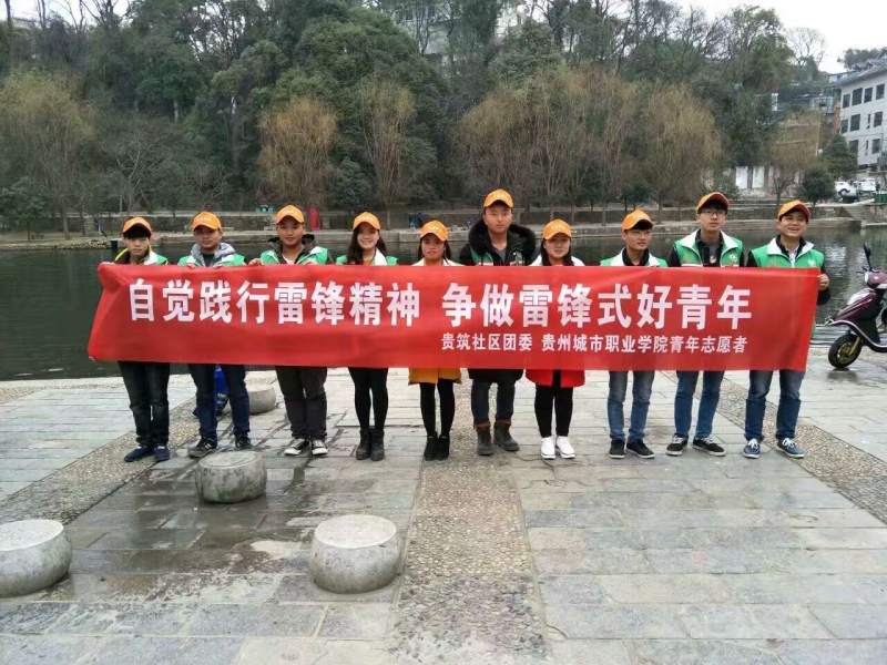 在2017年3月3日下午,我校志愿者在花溪贵筑社区开展志愿者活动,遵纪守法办事,一身正气铿锵,学习雷锋日,让文明不息,把幸福传递。