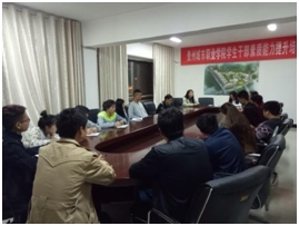 2017年4月24日晚,校团委老师组织学生团干在校团委办公室2楼会议室开展了团干培训活动,对学生团干的工作方式、方法进行了细致的培训,调动学生团干的工作激情,增强了各团支部的凝聚力。