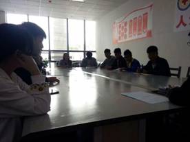201865日一周一次的社联例会在综合行政大楼社团活动室举行,校团委书记孔玉林老师、副书记瞿丽雯老师和社联主席唐福出席了会议,孔玉林书记和瞿丽雯老师在会议上讲了有关活动的宣传方式和对下一年社团纳新活动等一系列相关的工作做了讲解和安排,另外以此次会议增强了各协会之间的交流。
