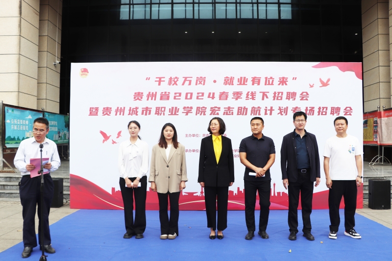为深入学习贯彻党的二十大精神,落实党中央、国务院和省委、省政府“稳就业”“保就业”决策部署,抢抓春季开学后促就业工作关键期,全力促进毕业生高质量充分就业,4月18日,共青团贵州省委员会、贵州省学生联合会、贵州城市职业学院联合举办的“千校万岗·就业有位来”贵州省2024春季线下招聘会暨贵州城市职业学院宏志助航计划专场招聘会在学校教学科研行政楼前广场举行。贵州城市职业学院党委书记刘杰、副校长李剑锋、副校长徐高峰、共青团贵州省委员会学校部胡红梅老师、贵州省学生联合会驻会执行主席何丽园老师、贵州就业信息网 路厅总经理等领导嘉宾出席招聘会并现场指导。
