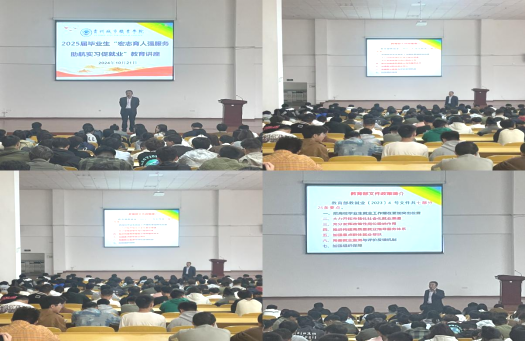 为深入学习贯彻党的二十届三中全会精神和习近平总书记在全国教育大会上的重要讲话精神,贯彻落实党中央、国务院关于高校毕业生就业工作的决策部署,加强毕业生就业指导和就业服务,扎实推进2025届毕业生就业工作,帮助毕业生及时了解当前就业政策和就业形势,提升就业竞争力,2024年10月18日---10月24日,我校开展了2025届毕业生就业指导讲座。