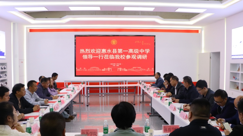 2024年11月4日,惠水县第一高级中学副校长柴祥辉一行带领90余名高三师生到贵州城市职业学院参观调研。交流座谈会在教学科研行政楼一楼劳动教育智慧实践中心召开,董事长周鸿静,党委副书记、校长刘吉昌,执行校长谢廷秋,党委委员、副校长徐高峰等校领导出席会议,各二级学院院长、相关部门负责人参加会议。